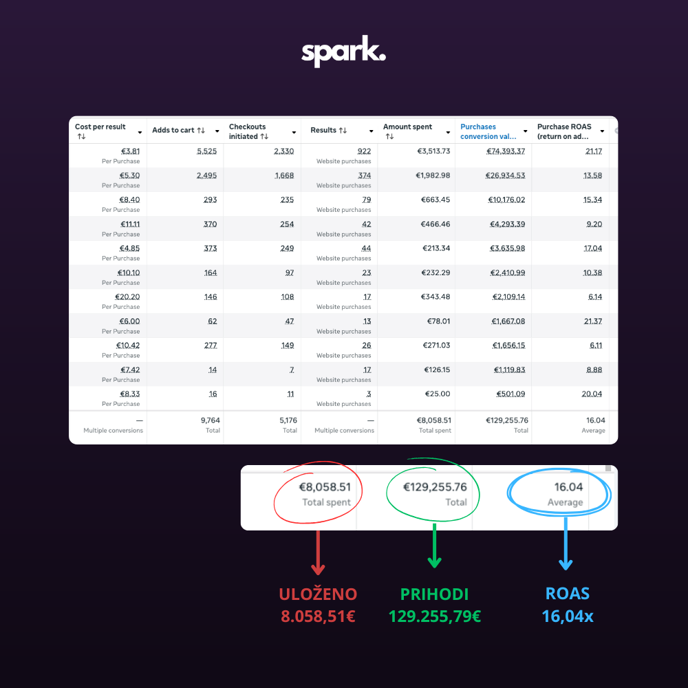 Tijekom godinu dana aktivne suradnje ostvarili smo prosječan ROAS od 16x, što znači da se klijentu svaki uloženi euro vraćao 16 puta. Kroz strateško oglašavanje, jasnu optimizaciju i kvalitetnu kreativnu produkciju, klijentu smo donijeli više od 120.000 € ukupnog prometa.